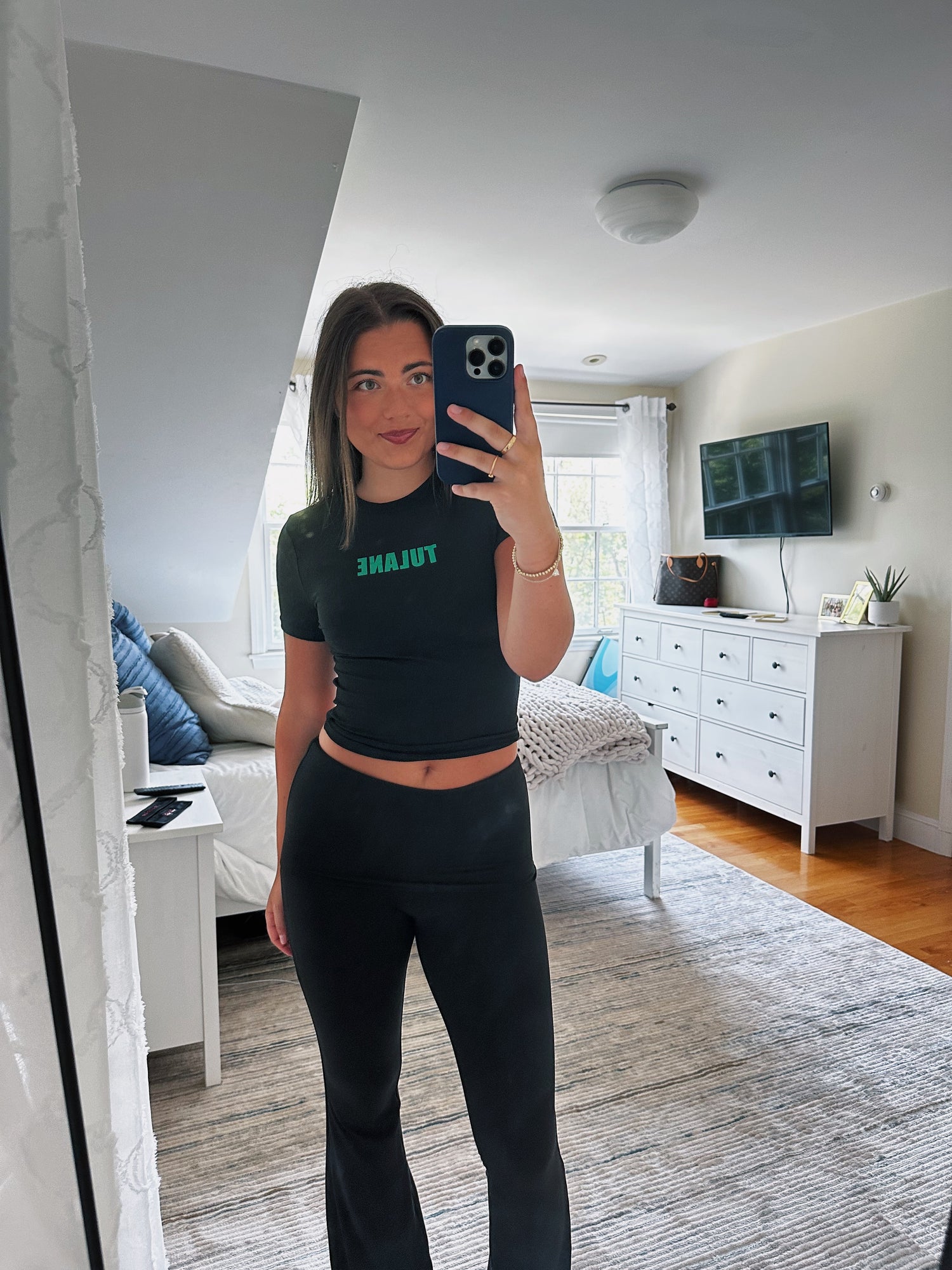 Custom roll over flare leggings and baby tee matchings set customizable for any school